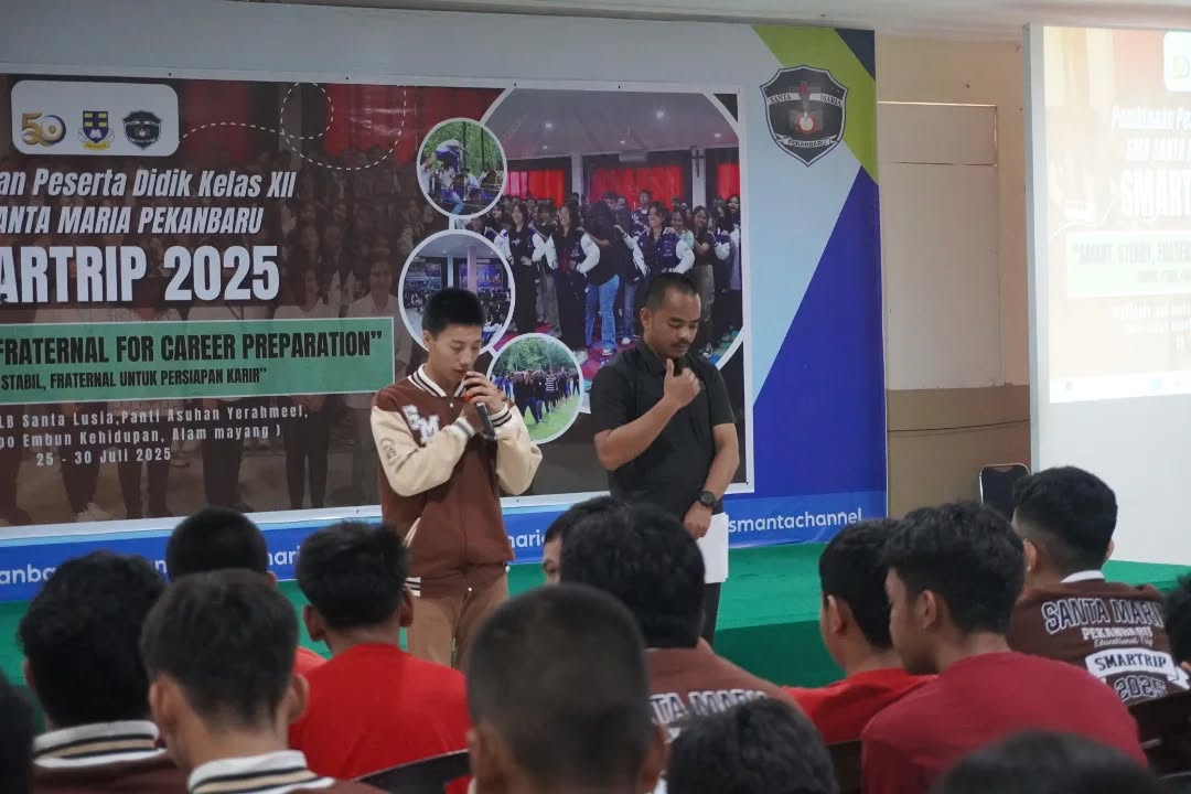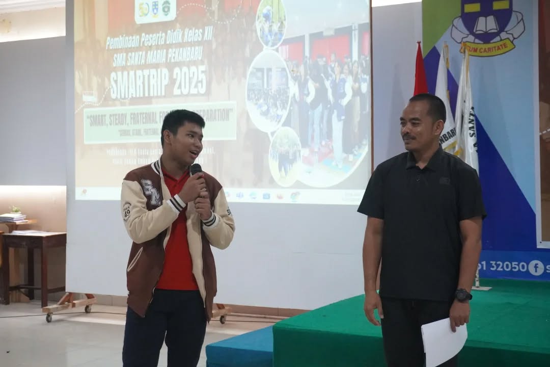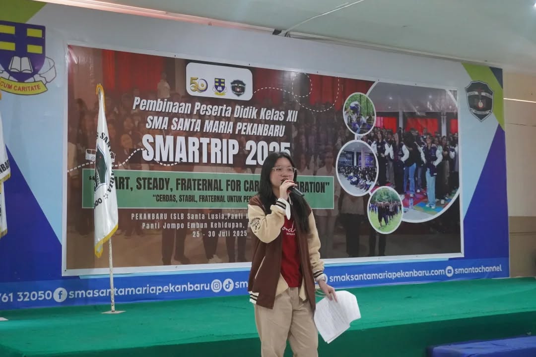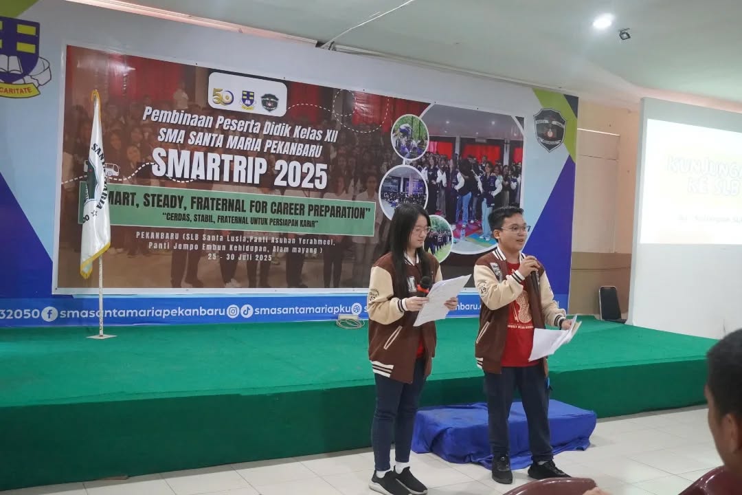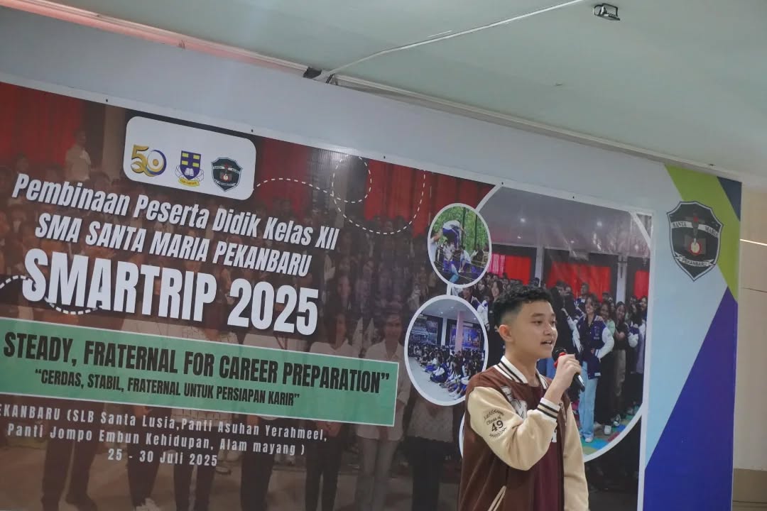 Selasa, 29 Juli 2025, kegiatan Pembinaan Peserta Didik Kelas XII SMARTRIP hari keempat adalah presentasi pengalaman praktik bermasyarakat dan peneguhan reflektif di Ruang Pertemuan SMA Santa Maria. Tujuannya adalah membagikan pengalaman dan memetik nilai baik dari setiap praktik bermasyarakat yang dilakukan di SLB Santa Lusia, Panti Jompo Embun Kehidupan Bangsa, dan Panti Asuhan Yerahmeel sebelumnya.