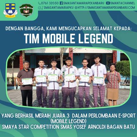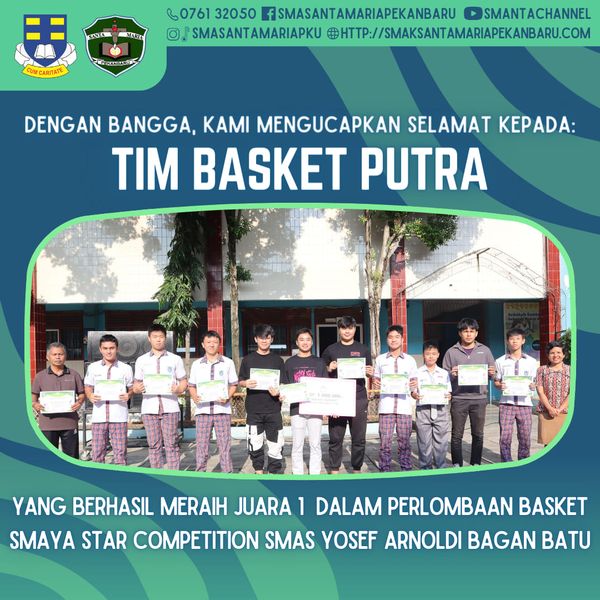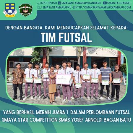 Selamat Sukses untuk SMA Santa Maria Pekanbaru, berhasil meraih juara dalam ajang Smaya Star Competition yang diadakan SMA Santo Yosef Arnoldi Bagan Batu (26-28/2/2024).