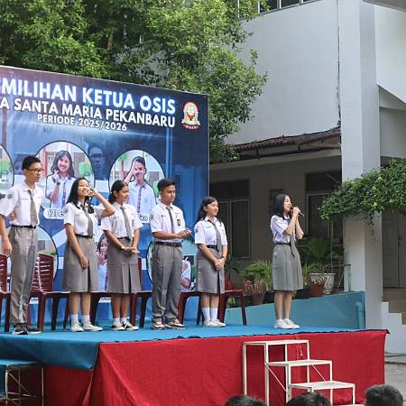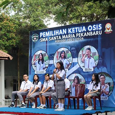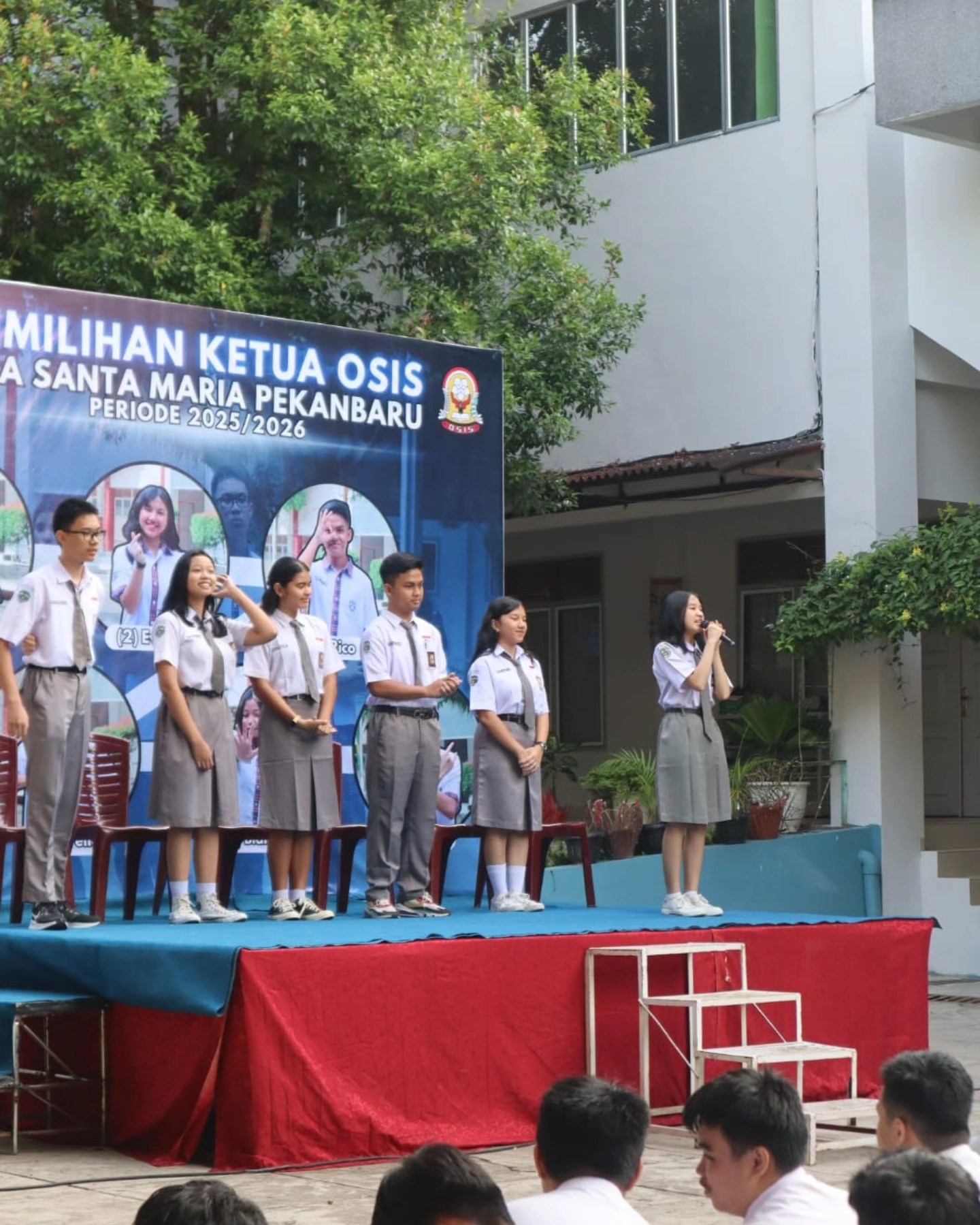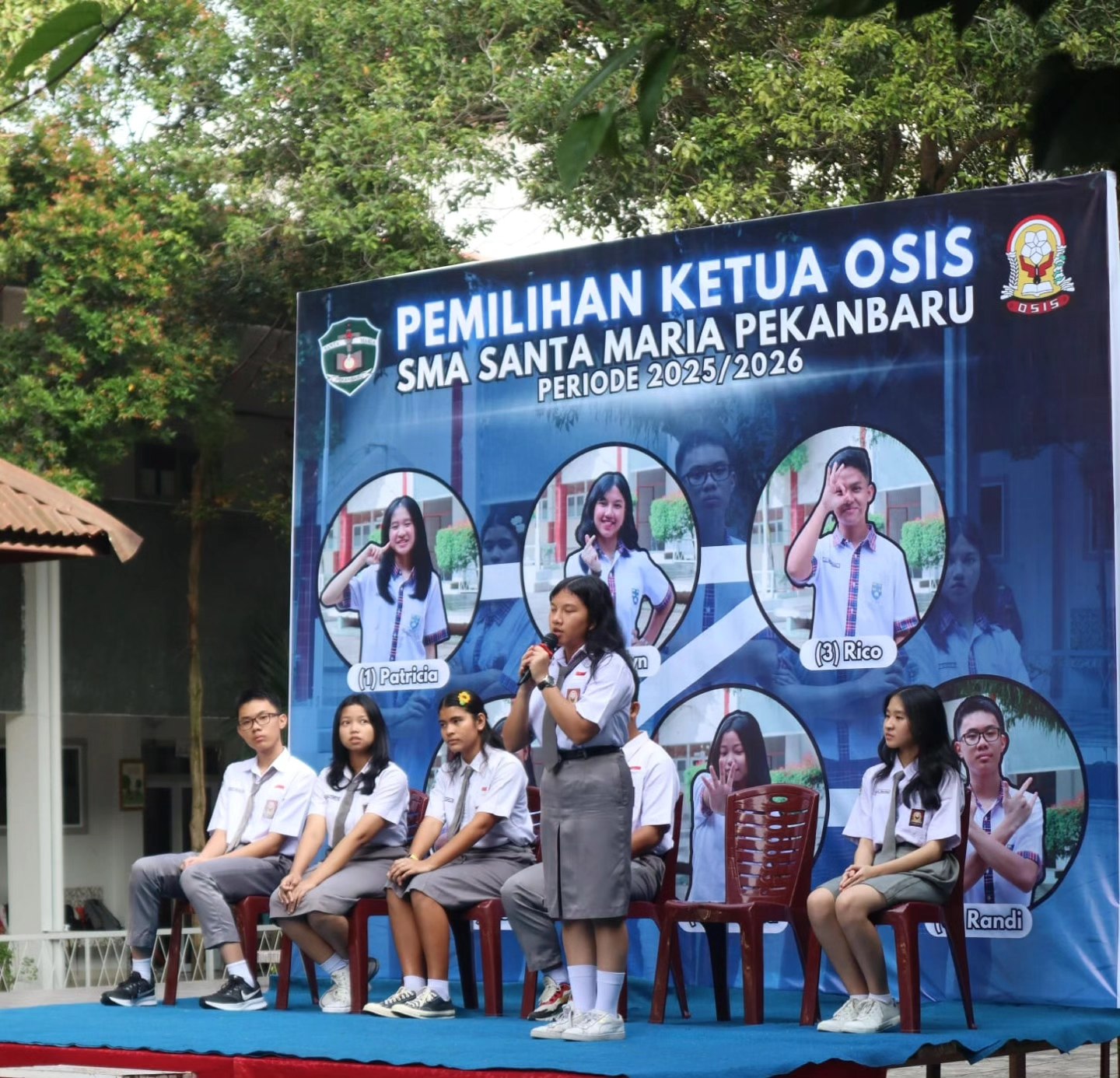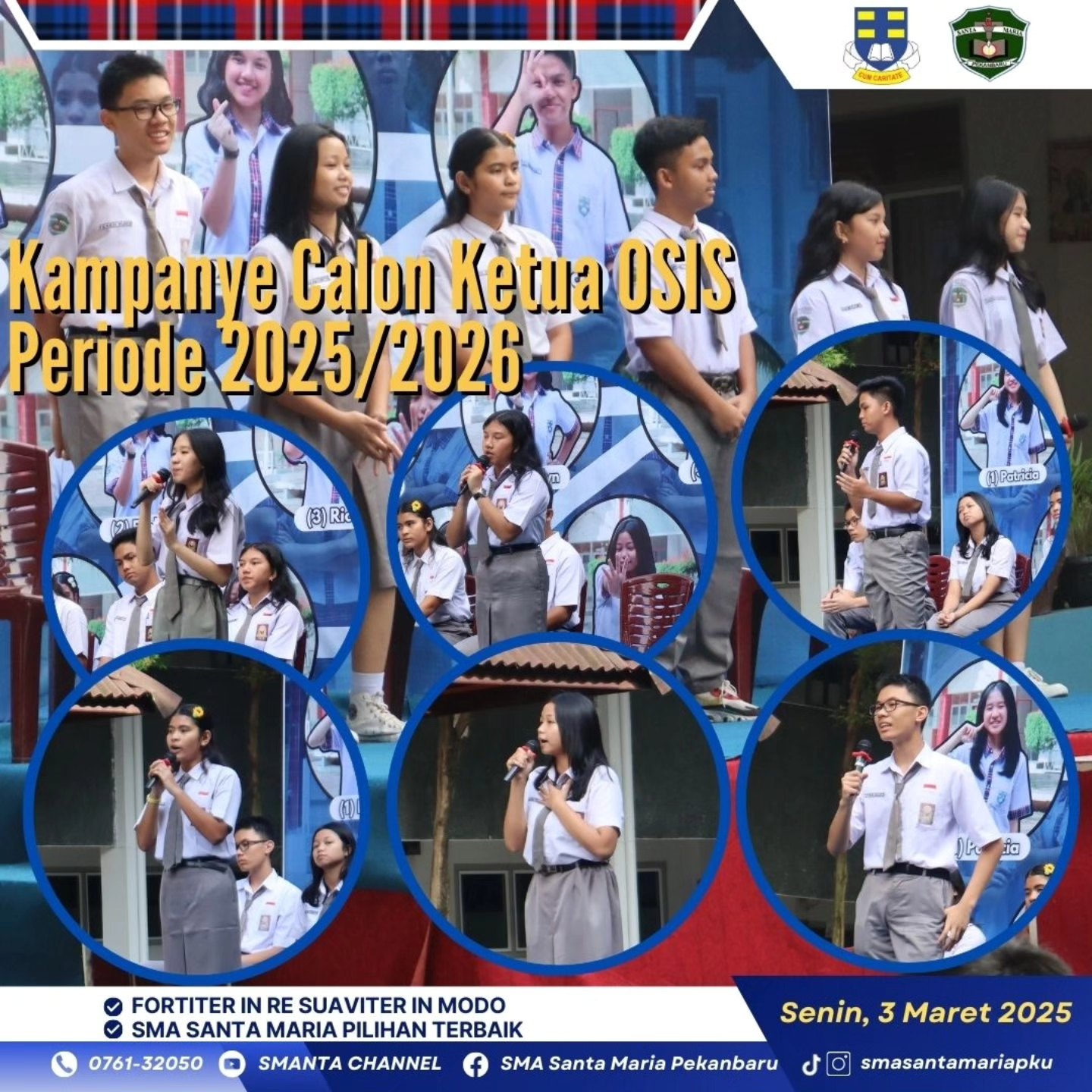 OSIS atau Organisasi Siswa Intra Sekolah adalah organisasi legal yang ada di lingkungan sekolah. Hari ini masing-masing calon ketua OSIS melakukan kampanye untuk menyampaikan visi misi untuk tahun 2025-2026.