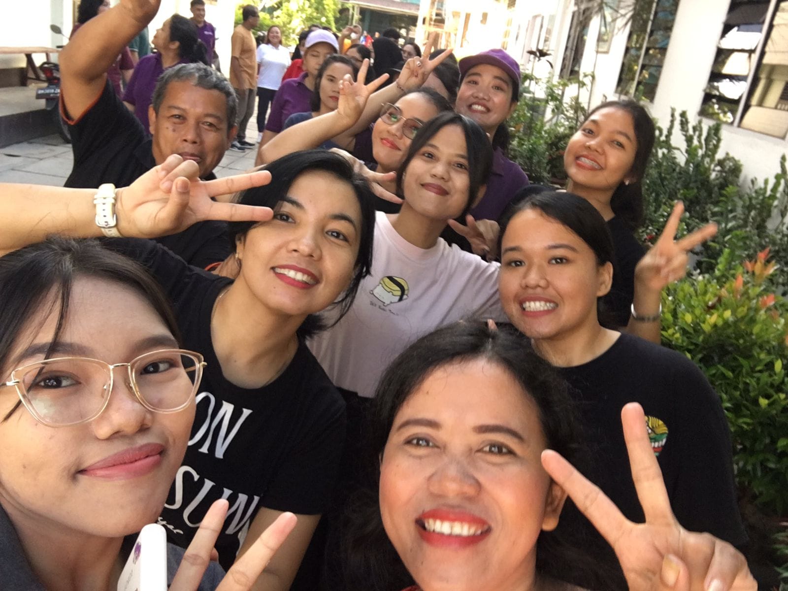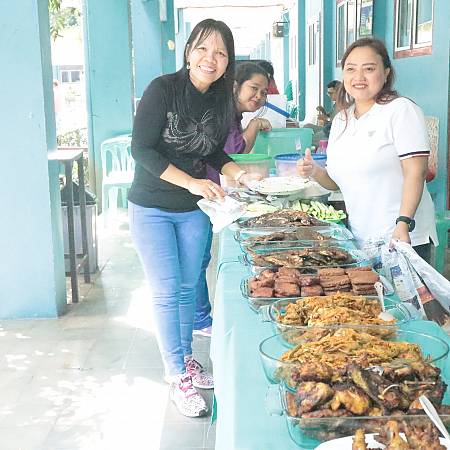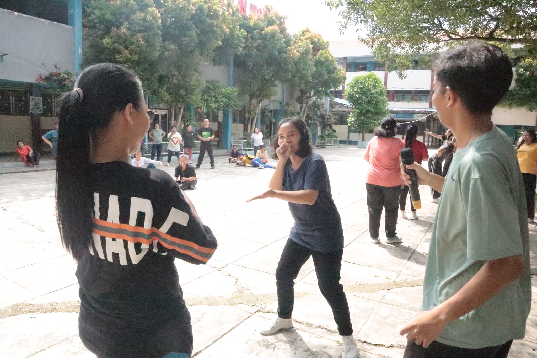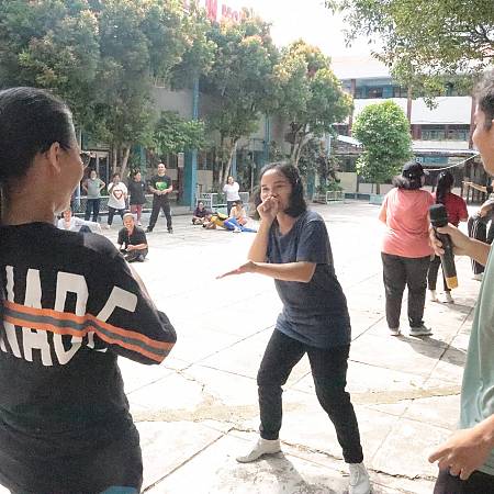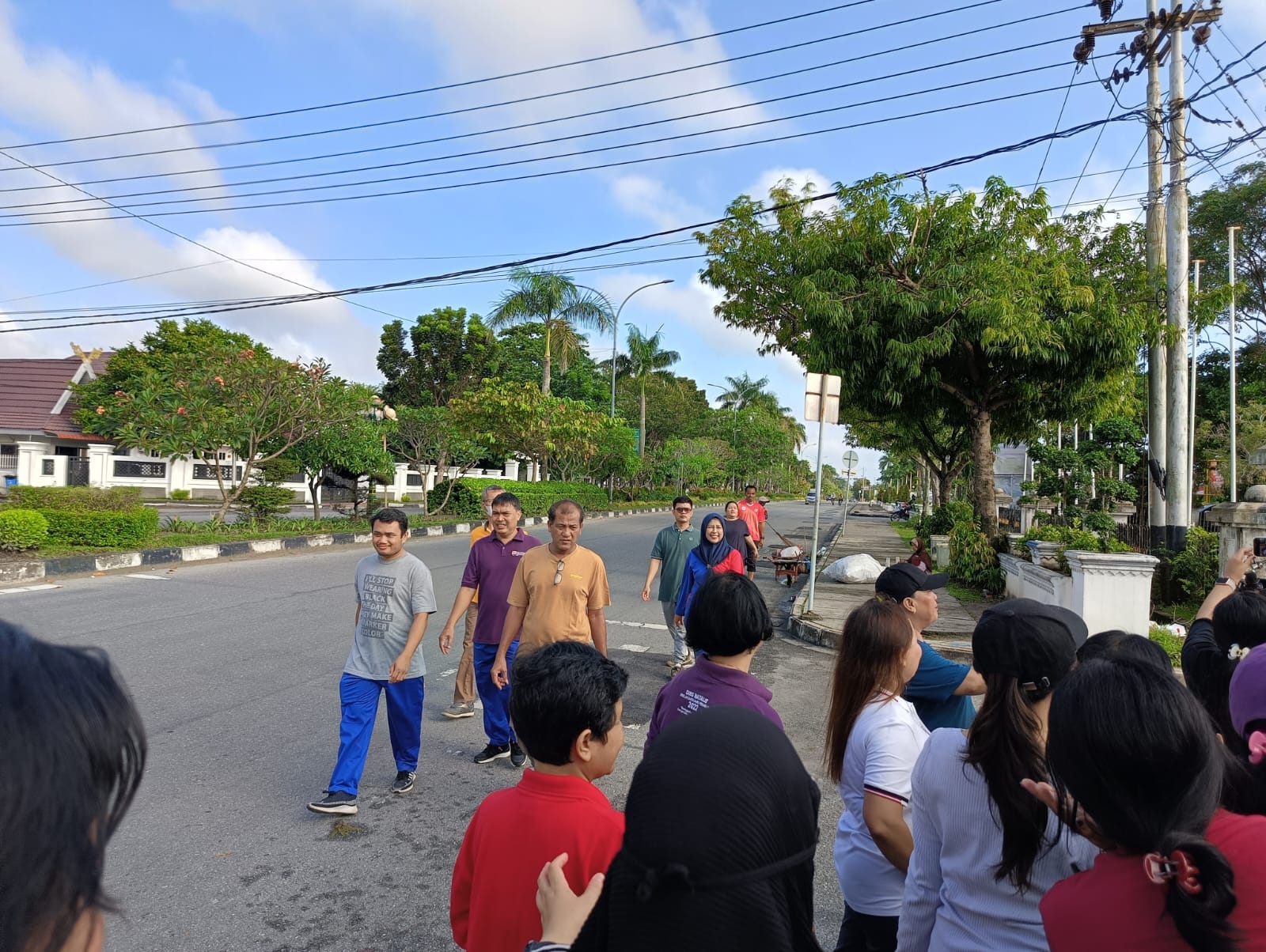 Kami mulai dengan olahraga/jalan santai, games kebersamaan, bernyanyi, makan bersama, dan lucky draw.