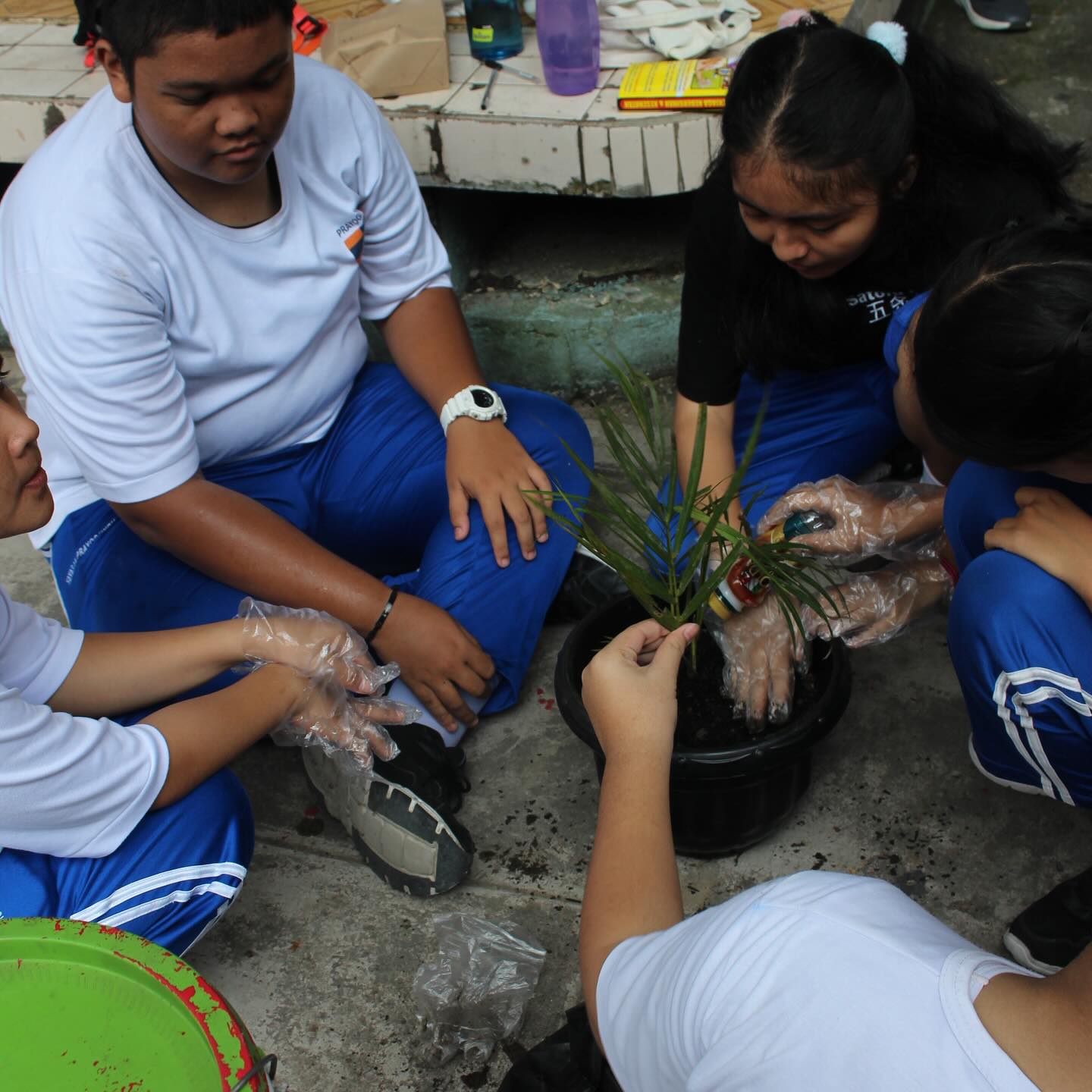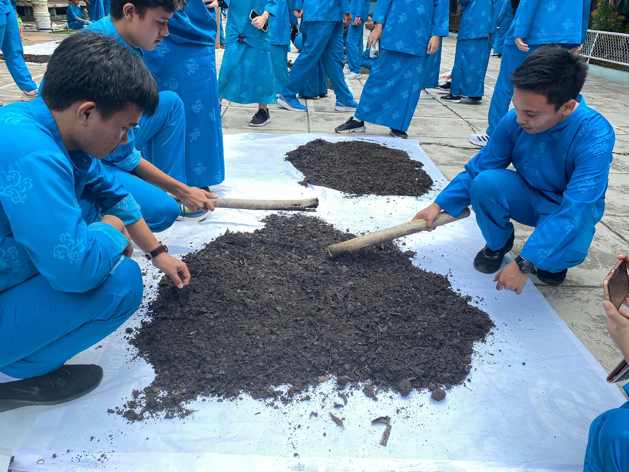 Proyek ini pun diakhiri dengan pengaplikasian kompos dan Eco-Enzyme yang telah dihasilkan pada Sabtu, 11 Mei 2024. Peserta Didik kelas 10 yang membuat Eco-Enzyme melakukan aksi penghijauan dengan mengepel lantai koridor kelas serta membersihkan kamar mandi menggunakan Eco-Enzyme hasil proyek, sedangkan yang membuat kompos akan menanam daun palma ke dalam pot yang berisi tanah campuran kompos tersebut.