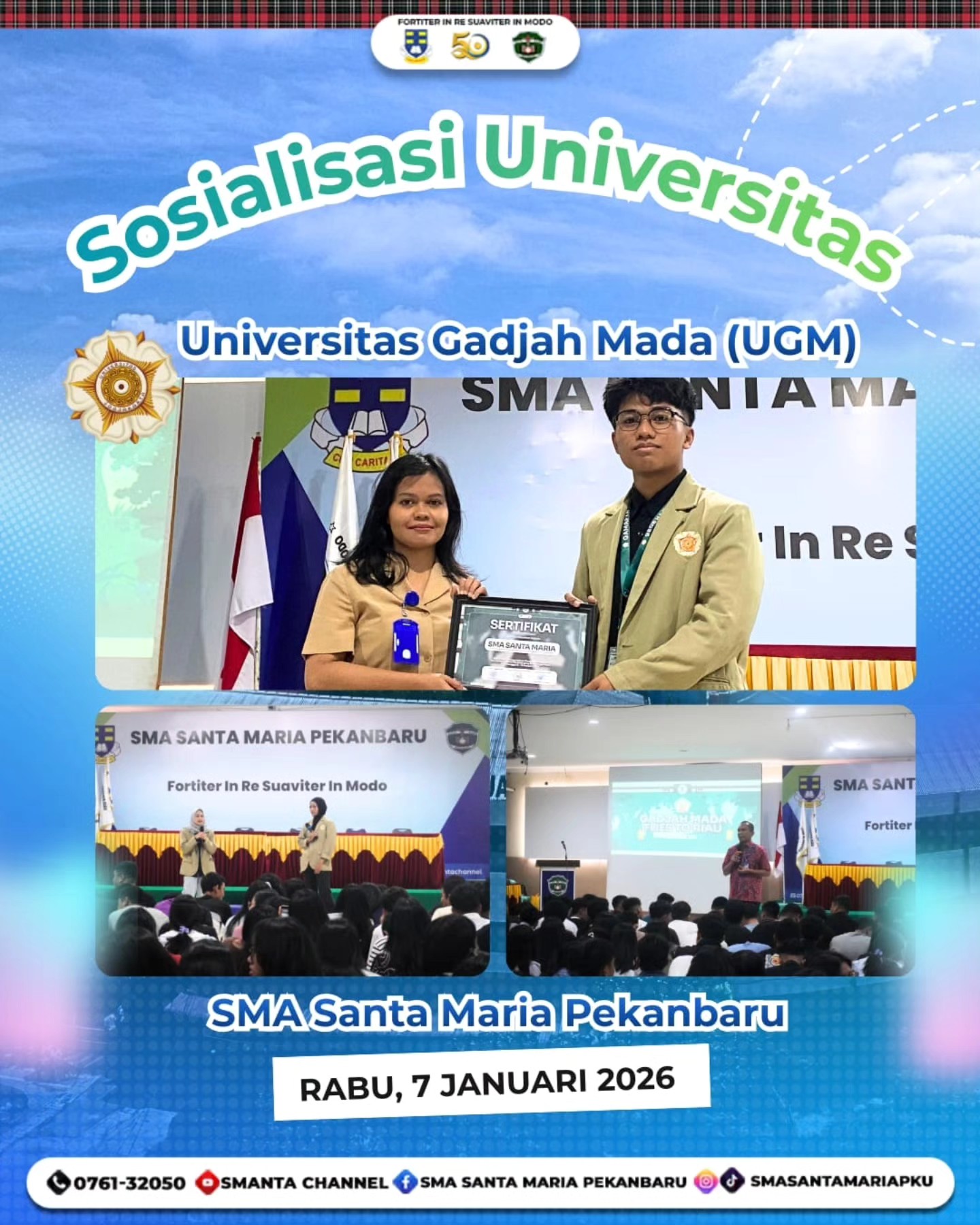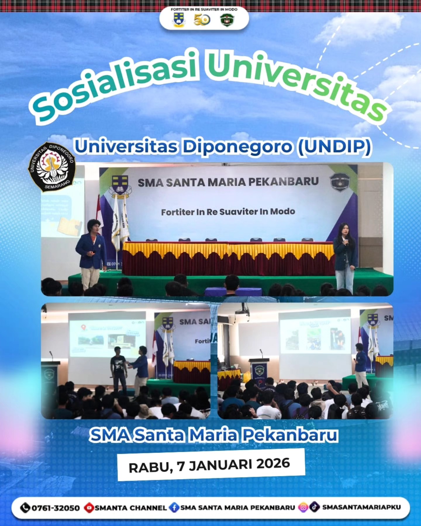 Kegiatan Presentasi Perguruan Tinggi Negeri, Beasiswa, Ikatan Dinas, dan Sharing Profesi Tahun 20252026 menjadi wadah strategis bagi peserta didik untuk memperoleh wawasan komprehensif tentang pilihan pendidikan tinggi dan perencanaan masa depan. Melalui sosialisasi dari UGM, UNPAD, dan UNDIP, siswa diharapkan mampu mengenali potensi diri, menentukan arah studi secara tepat, serta mempersiapkan langkah terbaik menuju jenjang pendidikan dan karier yang gemilang.