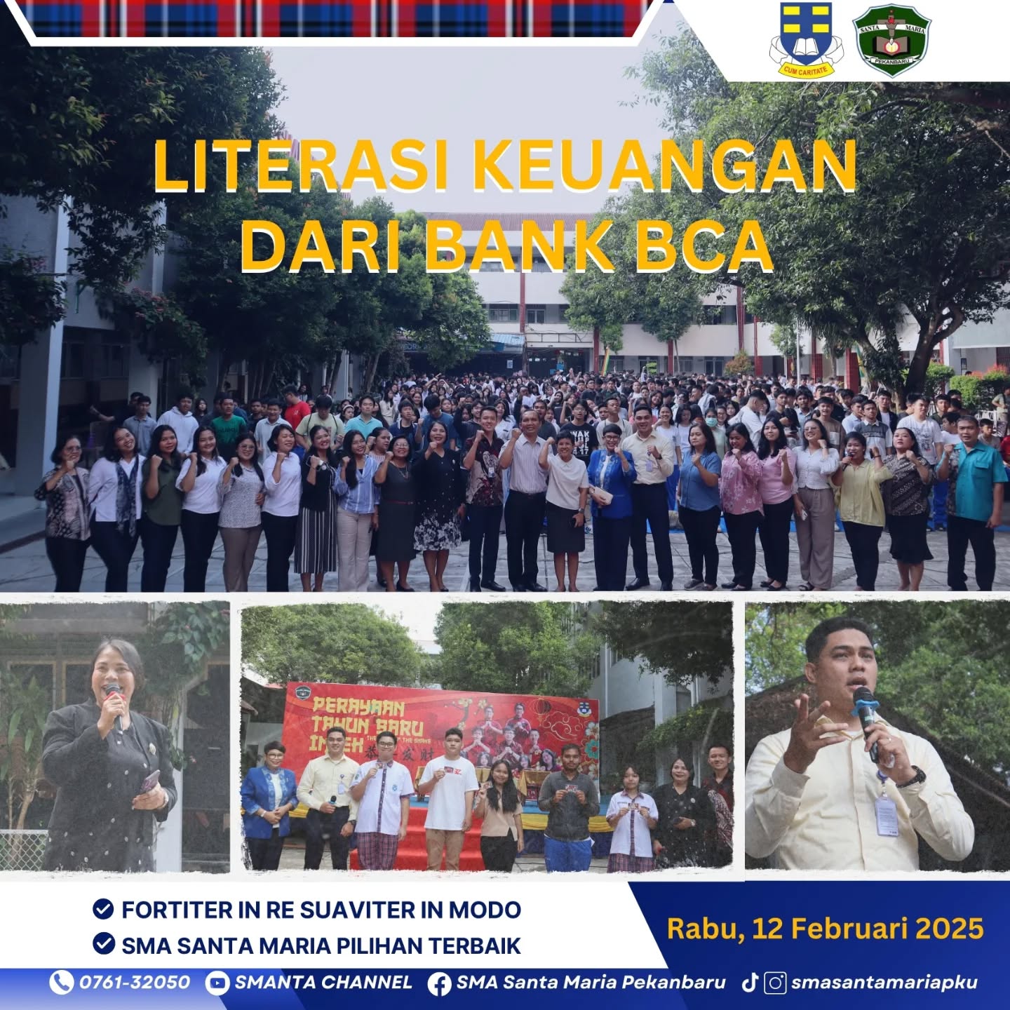 SMA Santa Maria Pekanbaru mengadakan kegiatan Literasi Keuangan dari bank BCA yang dipandu oleh Bapak Dion Fitrus, Staf Customer Service BCA KCU Pekanbaru dan dihadiri