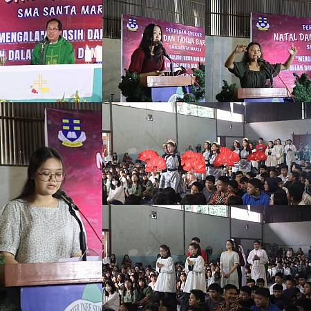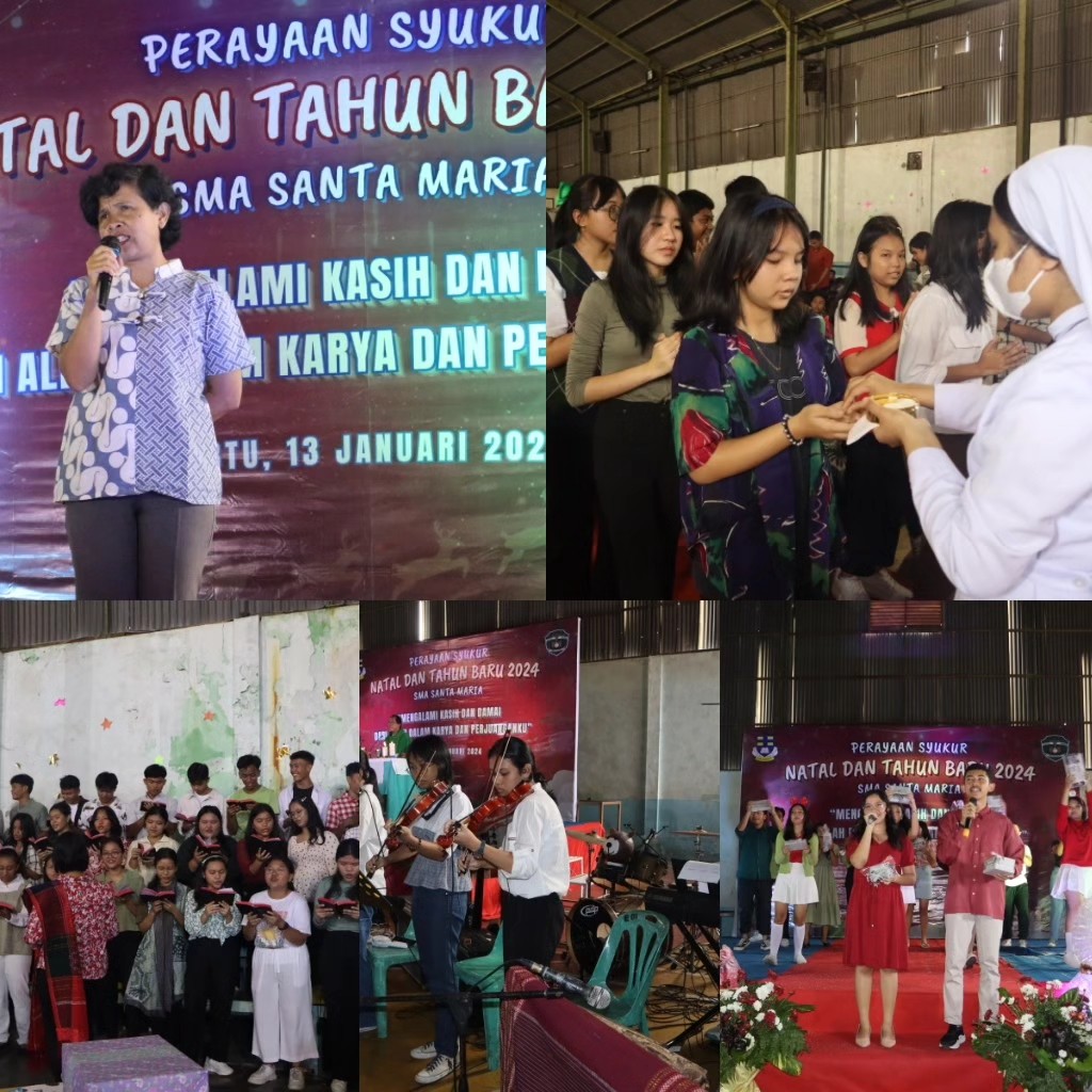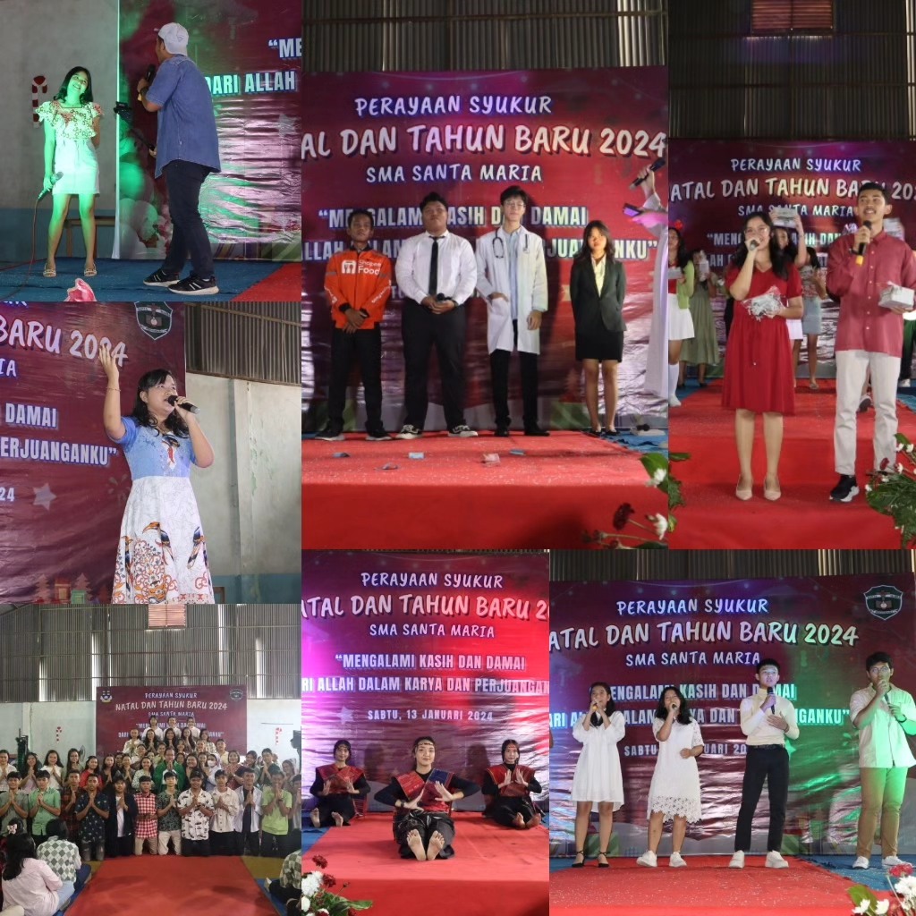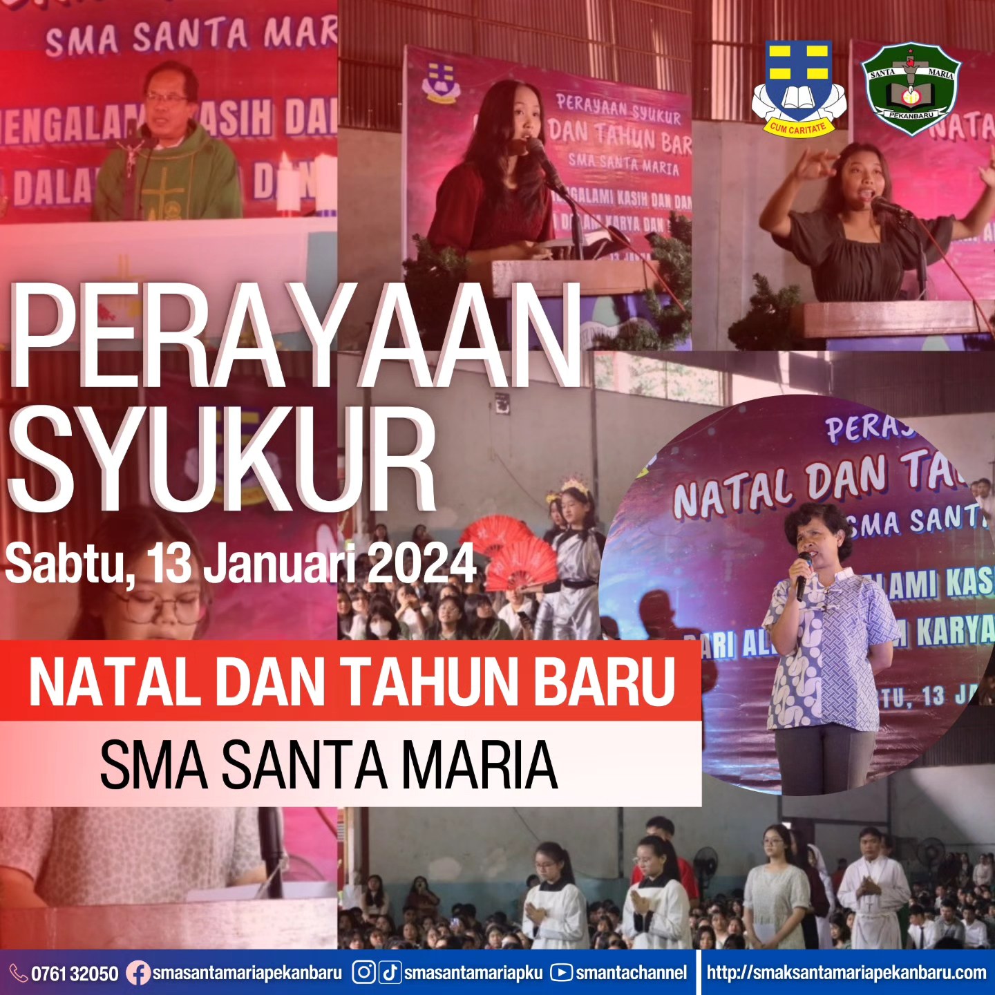 Perayaan Syukur Natal dan Tahun Baru 2024 SMA Santa Maria Pekanbaru dengan tema "Mengalami Kasih dan Damai dari Allah Dalam Karya dan Perjuanganku", Sabtu (13/1).