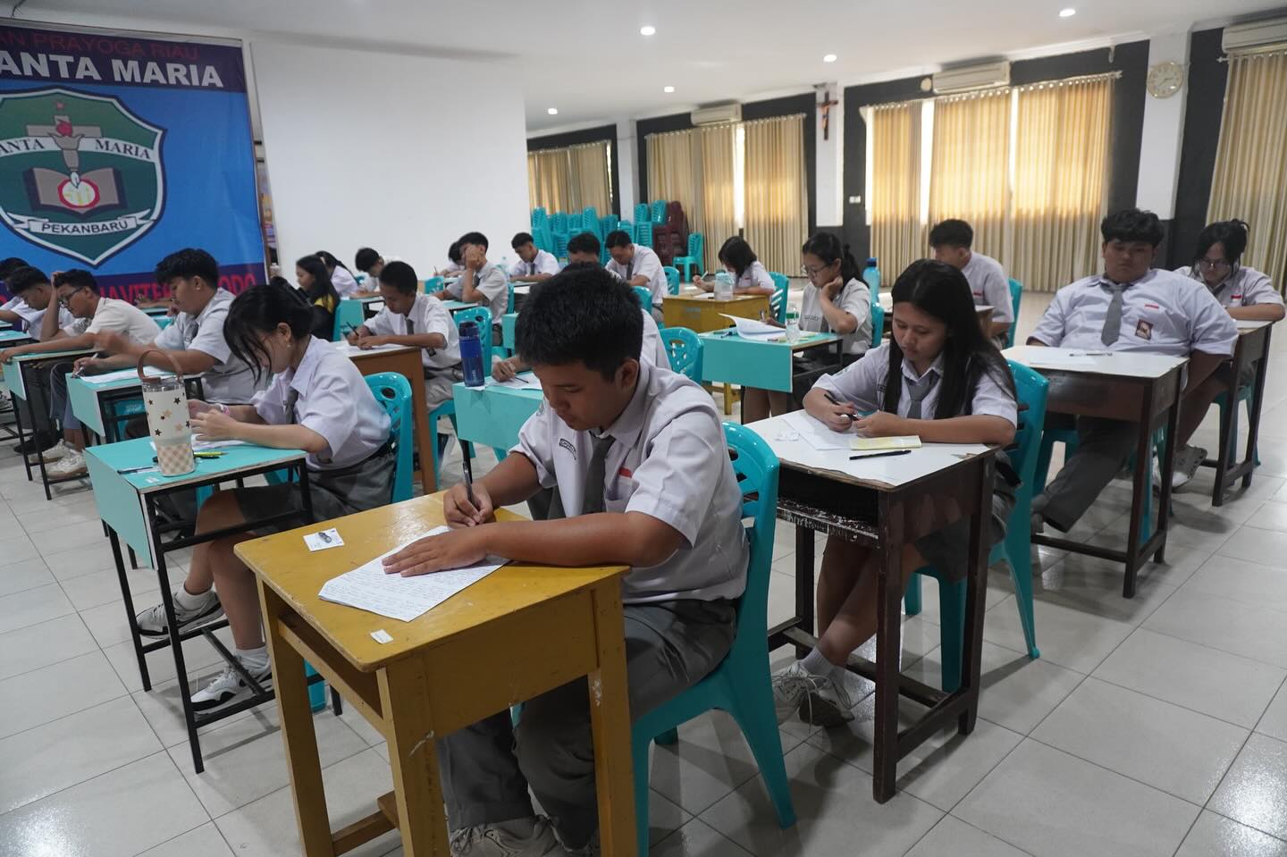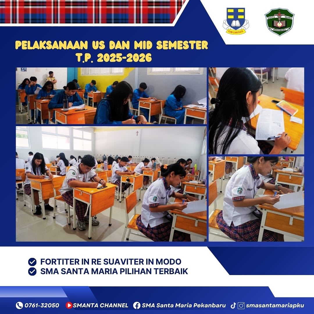 Pelaksanaan Ujian Sekolah (US) bagi peserta didik kelas XII serta Sumatif Tengah Semester (STS) bagi kelas X dan XI SMA Santa Maria Pekanbaru merupakan langkah nyata dalam perjalanan menuntut ilmu dan membangun masa depan. Setiap proses yang telah dilalui menjadi bekal berharga untuk menghadapi ujian dengan penuh keyakinan, kejujuran, dan tanggung jawab.