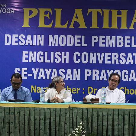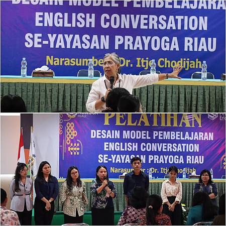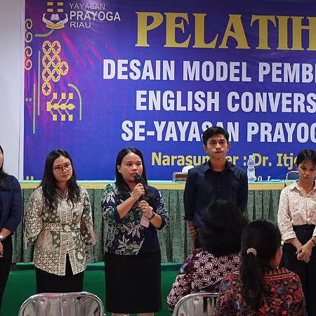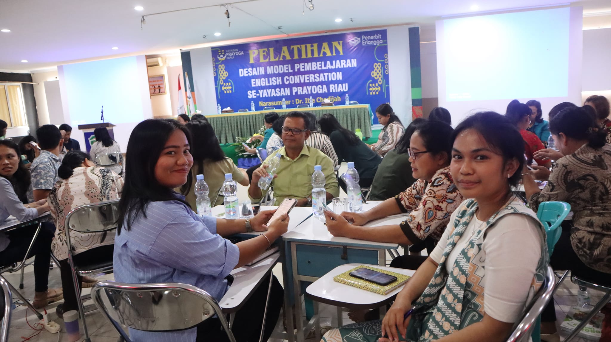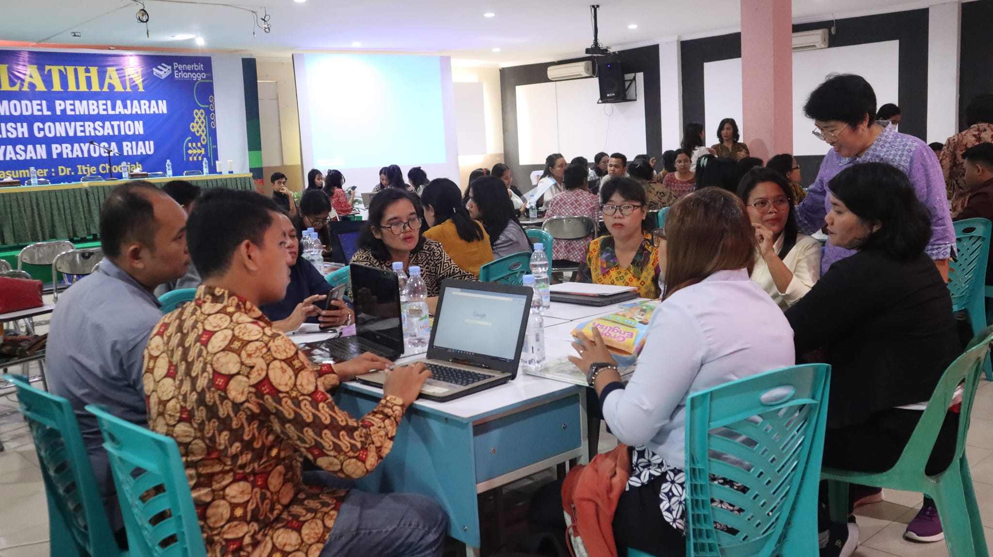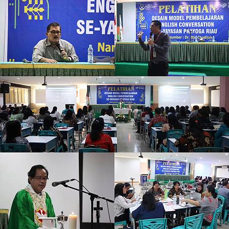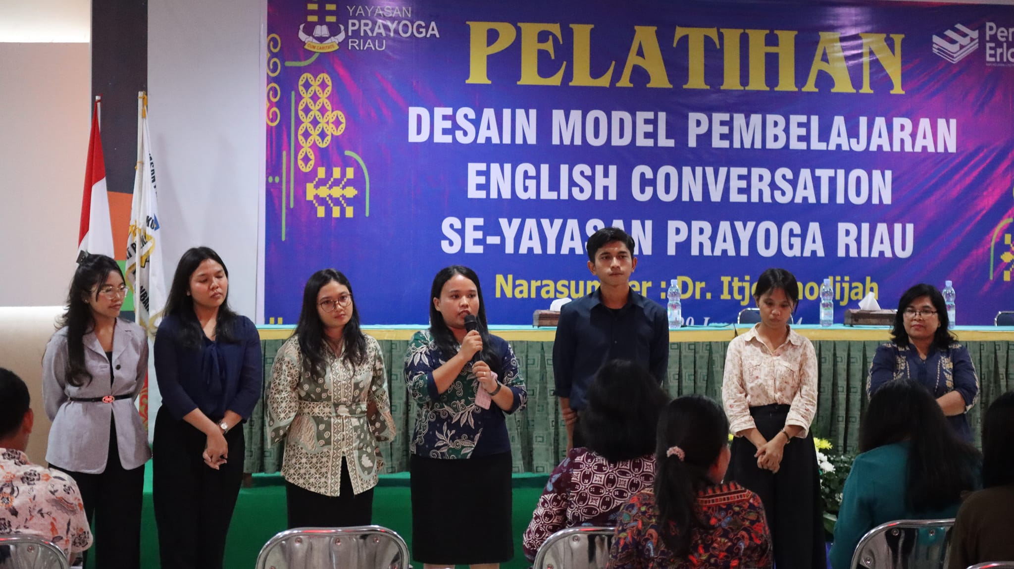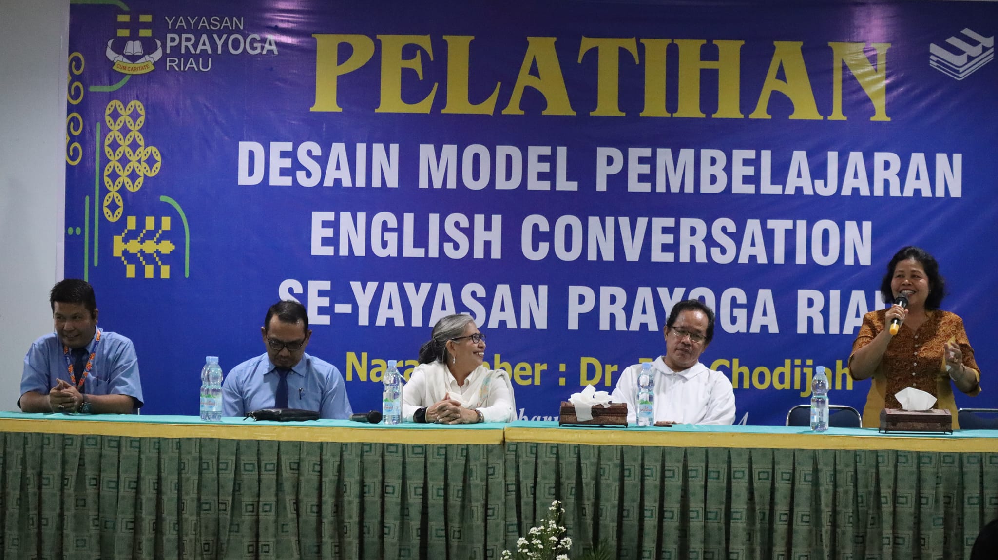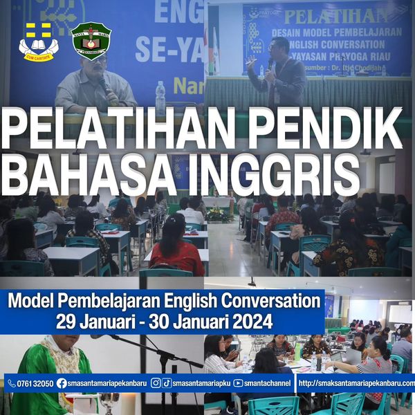 English Conversation Learning Model Design Training for Mr/Mrs Educators who are capable of English language lessons, starting from kindergarten level to high school according to Prayoga Riau Foundation. The training was carried out on January 29 to January 30, 2024, in the Meeting Room 3rd Floor of Santa Maria High School Pekanbaru.