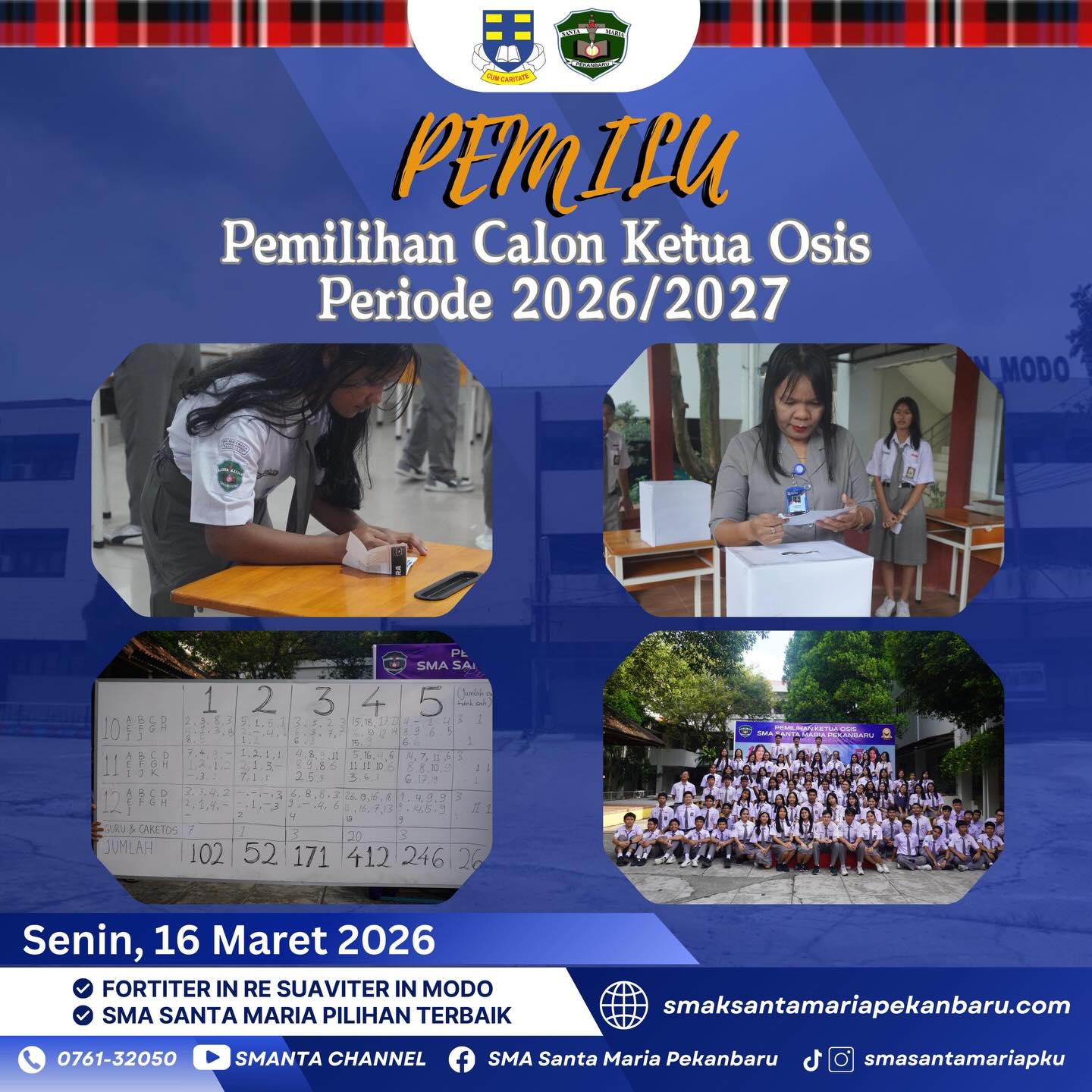 Pemilihan Ketua OSIS di SMA Santa Maria Pekanbaru bukan sekadar ajang memilih pemimpin, tetapi juga wujud nyata pembelajaran demokrasi di lingkungan sekolah. Melalui proses ini, setiap peserta didik diajak untuk berpartisipasi aktif, berpikir kritis, serta bertanggung jawab dalam menentukan masa depan organisasi.