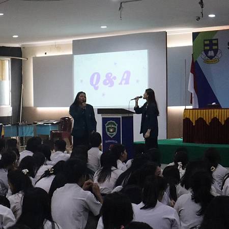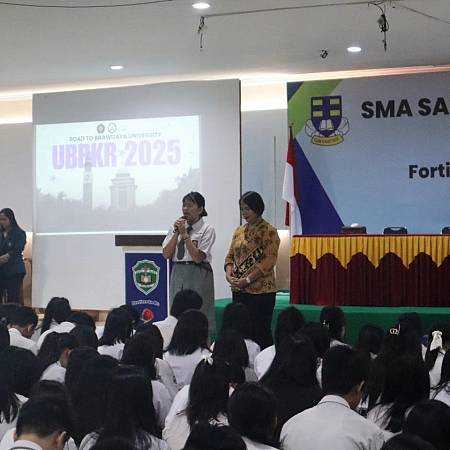 juga dari ITB, Beatrice Corryn Pangestu, Jurusan Teknik Elektro dan Informatika-Rekayasa (2024) dan rekan-rekannya memberikan presentasi tentang perkuliahan dan berbagai jurusan yang ada di UB dan ITB. Melalui kegiatan ini, harapannya para peserta didik kelas 12 pun semakin yakin dengan pilihan kampus dan jurusan yang akan dipilih sesuai dengan minat bakatnya.