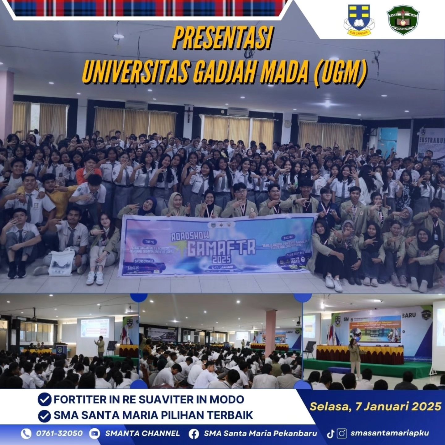 Presentasi Universitas Gadjah Mada (UGM) di SMA Santa Maria Pekanbaru pada Selasa (7/1/2025). Presentasi ini disampaikan oleh beberapa alumni SMA Santa Maria yang lulus di UGM, yakni