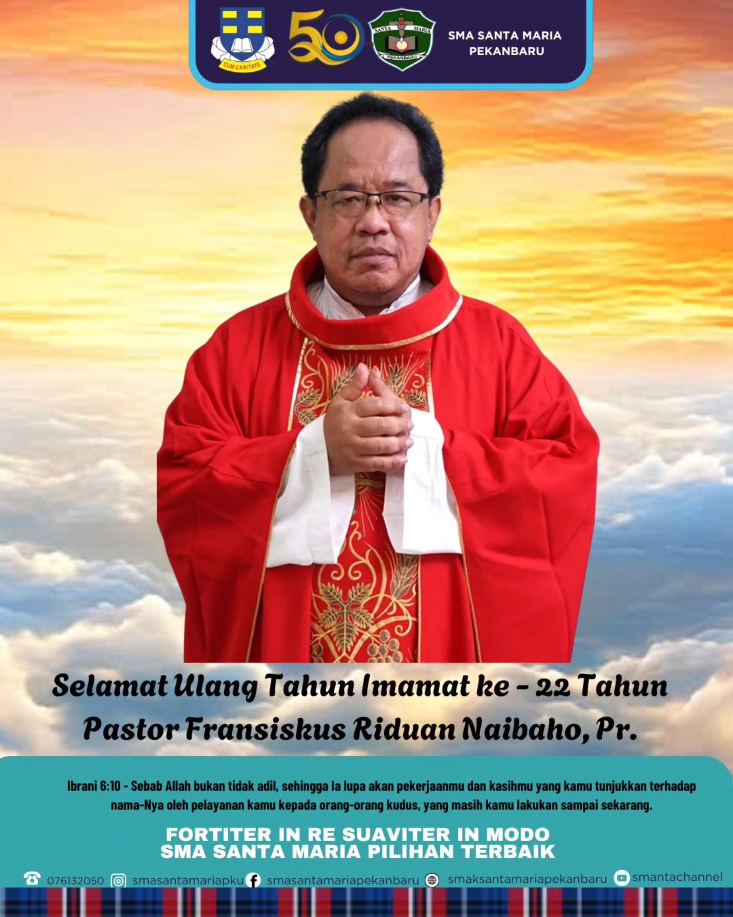 Proficiat atas Ulang Tahun Imamat ke-22, Pastor Fransiskus Riduan Naibaho, Pr. Semoga Pastor selalu sehat, penuh sukacita, dan setia dalam panggilan imamat. Semoga rahmat Tuhan selalu menyertai Pastor dalam setiap karya dan pelayanan.