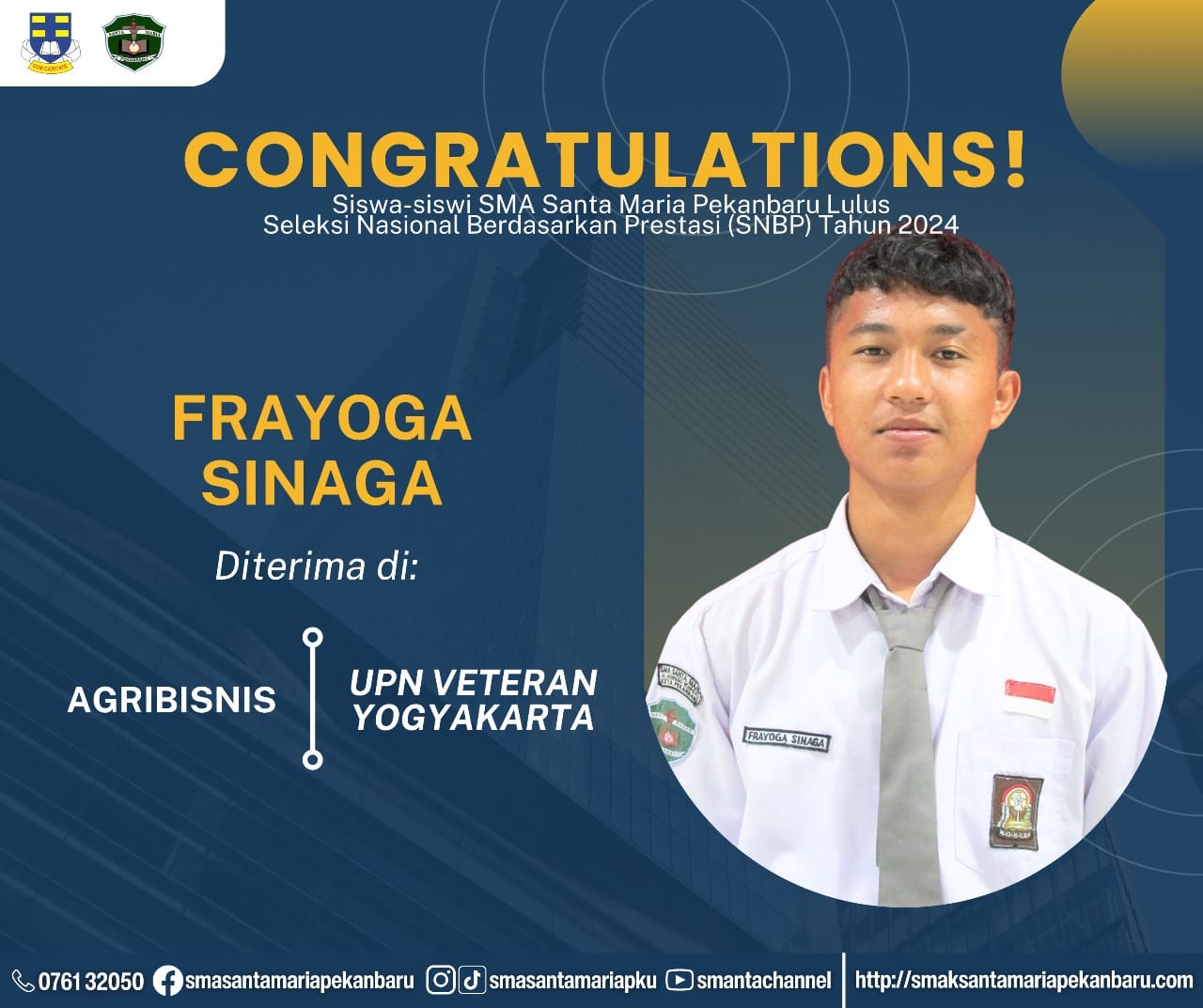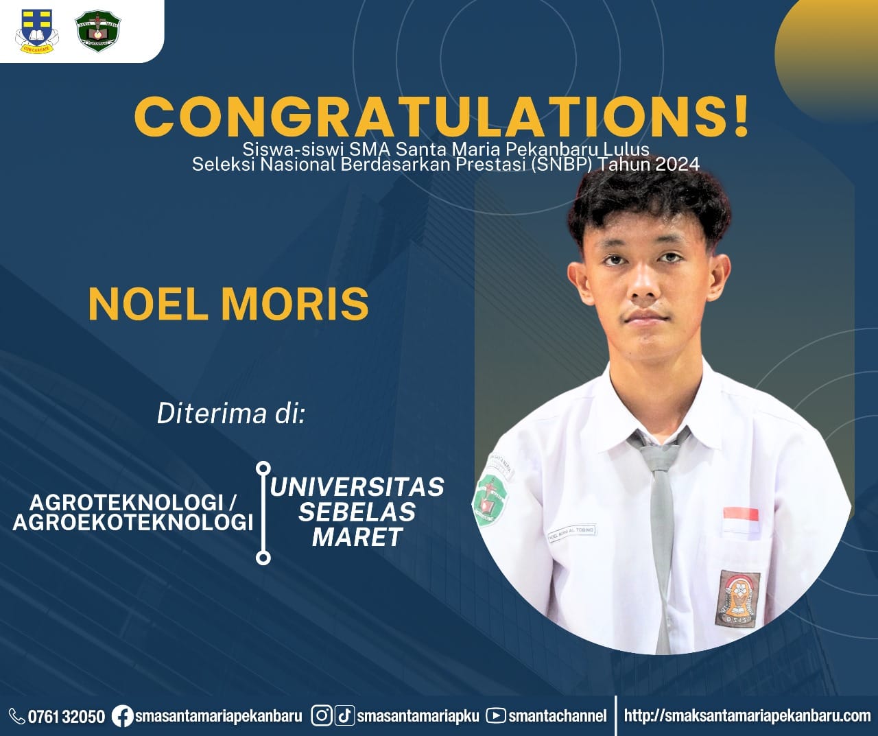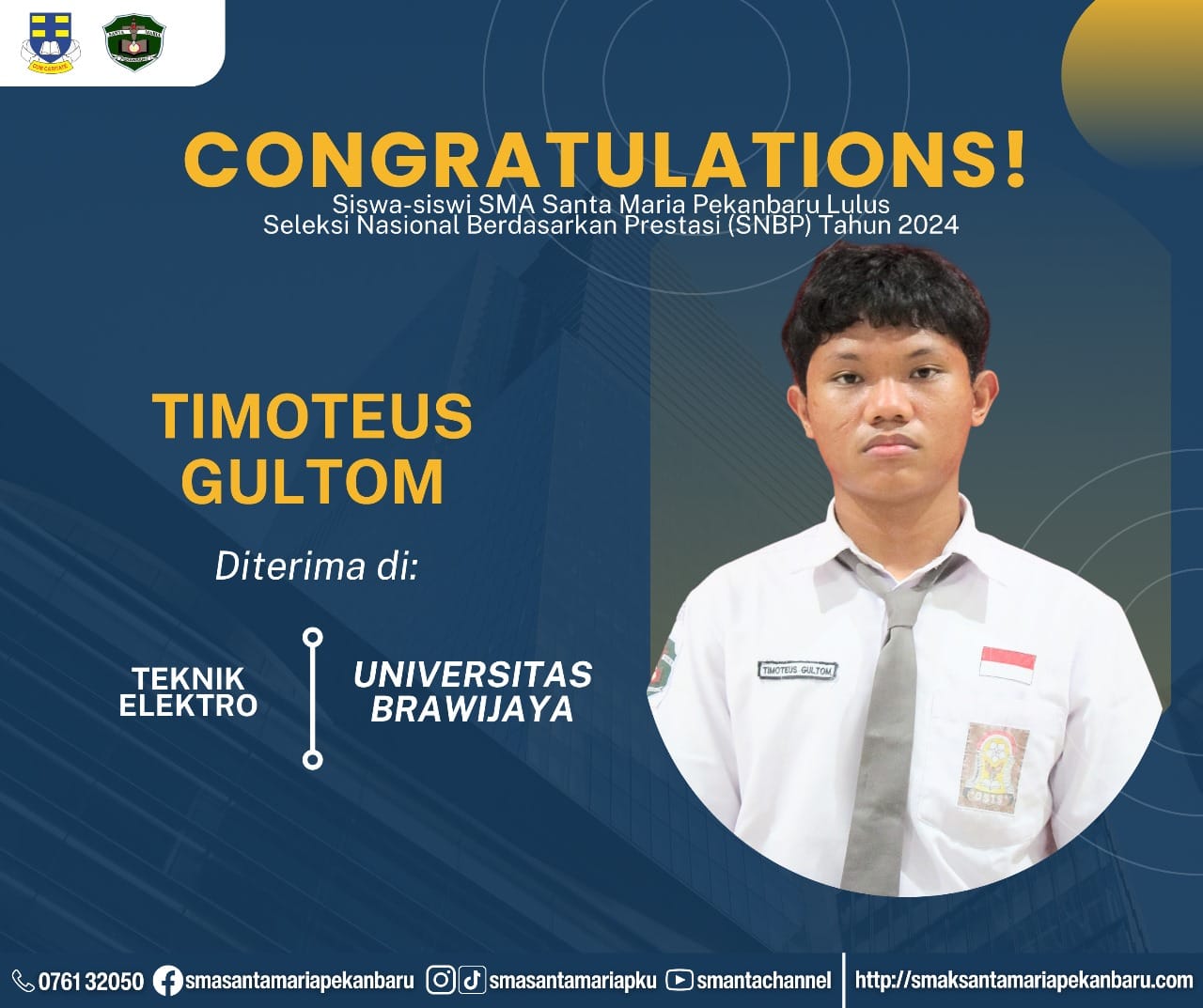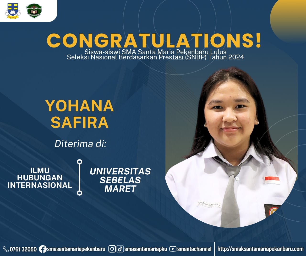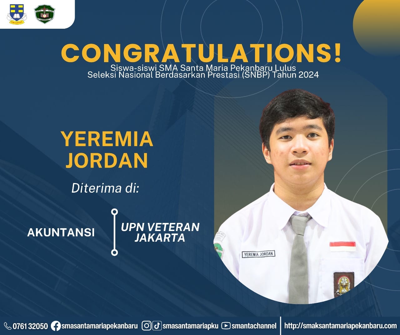 Selamat dan sukses untuk Peserta Didik SMA Santa Maria Pekanbaru yang LULUS DITERIMA di Perguruan Tinggi Negeri