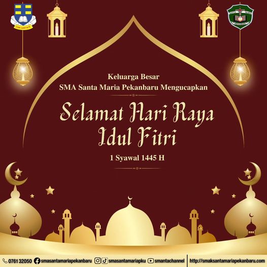 Keluarga Besar SMA Santa Maria Pekanbaru mengucapkan "Selamat hari raya Idul Fitri untuk Bapak/Ibu/Saudara yang merayakan".