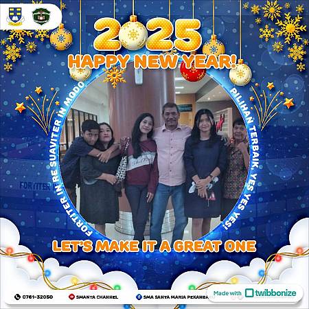 Seluruh keluarga besar SMA Santa Maria Pekanbaru mengucapkan Selamat Tahun Baru. Mari kita warnai tahun ini dengan kebahagiaan, suka cita, kesuksesan untuk ...