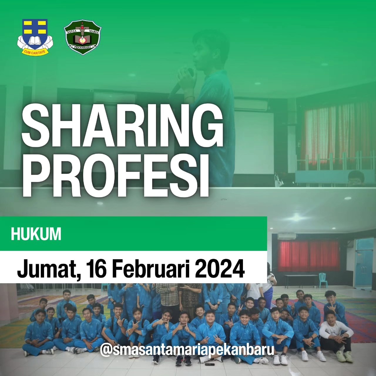 Jumat (16/2/2024), Peserta didik SMA Santa Maria Pekanbaru yang berminat di bidang hukum khususnya sebagai pengacara atau lawyer mendapatkan ilmu dan pengalaman dari Bapak Nien Rafles Siregar, S.H., M.H. Beliau merupakan lulusan SMA Santa Maria Pekanbaru tahun 2002. Ia adalah pendiri dan Managing Partner di Siregar Setiawan Manalu Partnership.