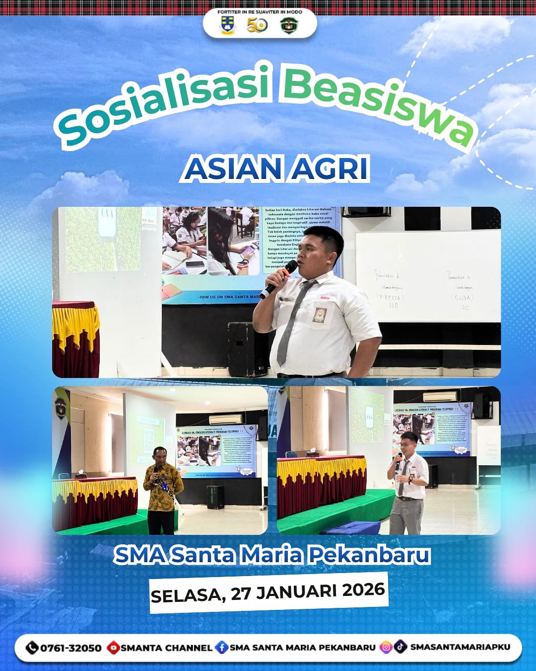 Selasa, 27 Januari 2026 Peserta Didik Kelas XII SMA Santa Maria Pekanbaru mendapatkan pemaparan informasi tentang program Beasiswa Asian Agri.