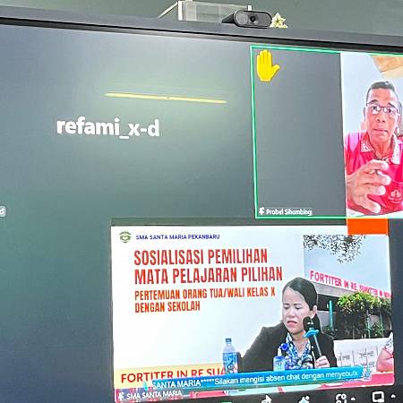 Sabtu, 14 Febuari 2026 SMA Santa Maria mengadakan Sosialisasi Pemilihan Mata Pelajaran Jurusan Kelas X secara virtual melalui Zoom Meeting.