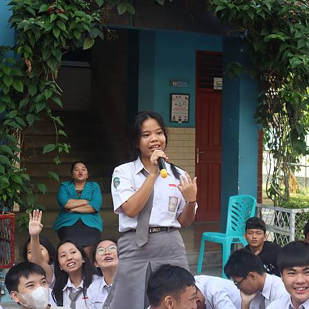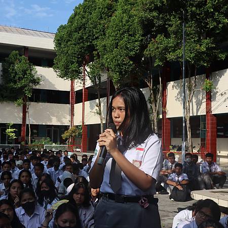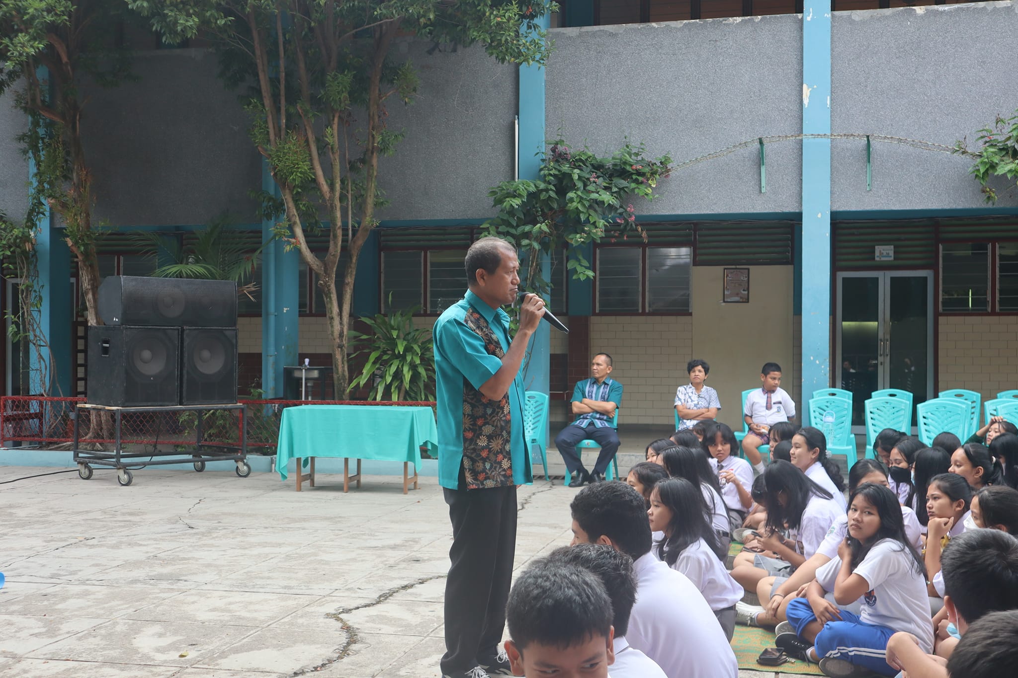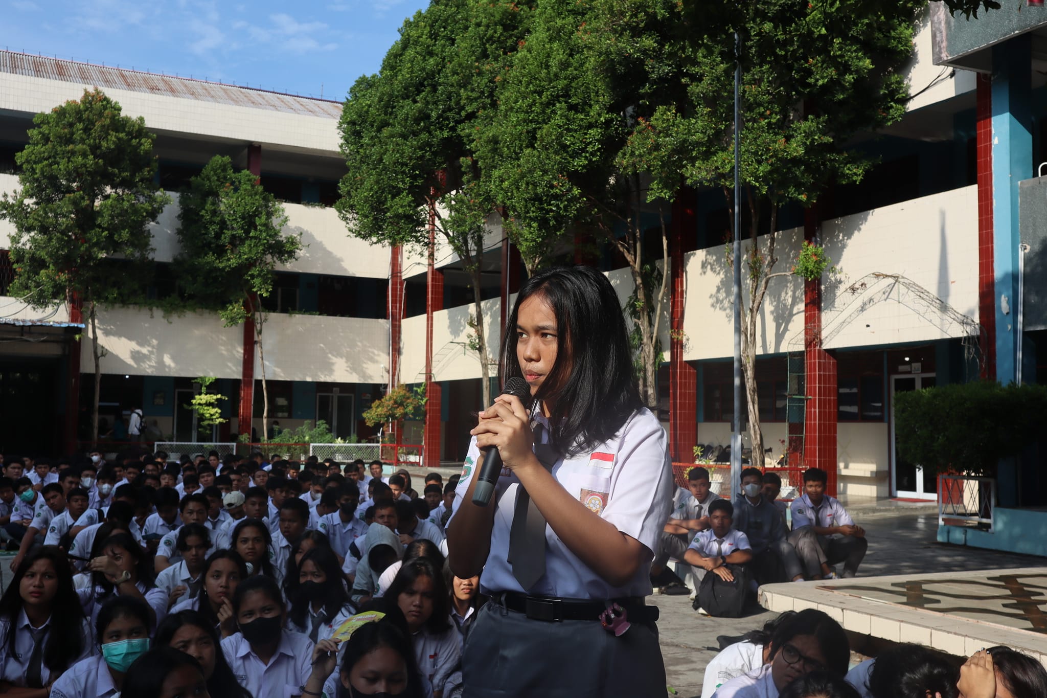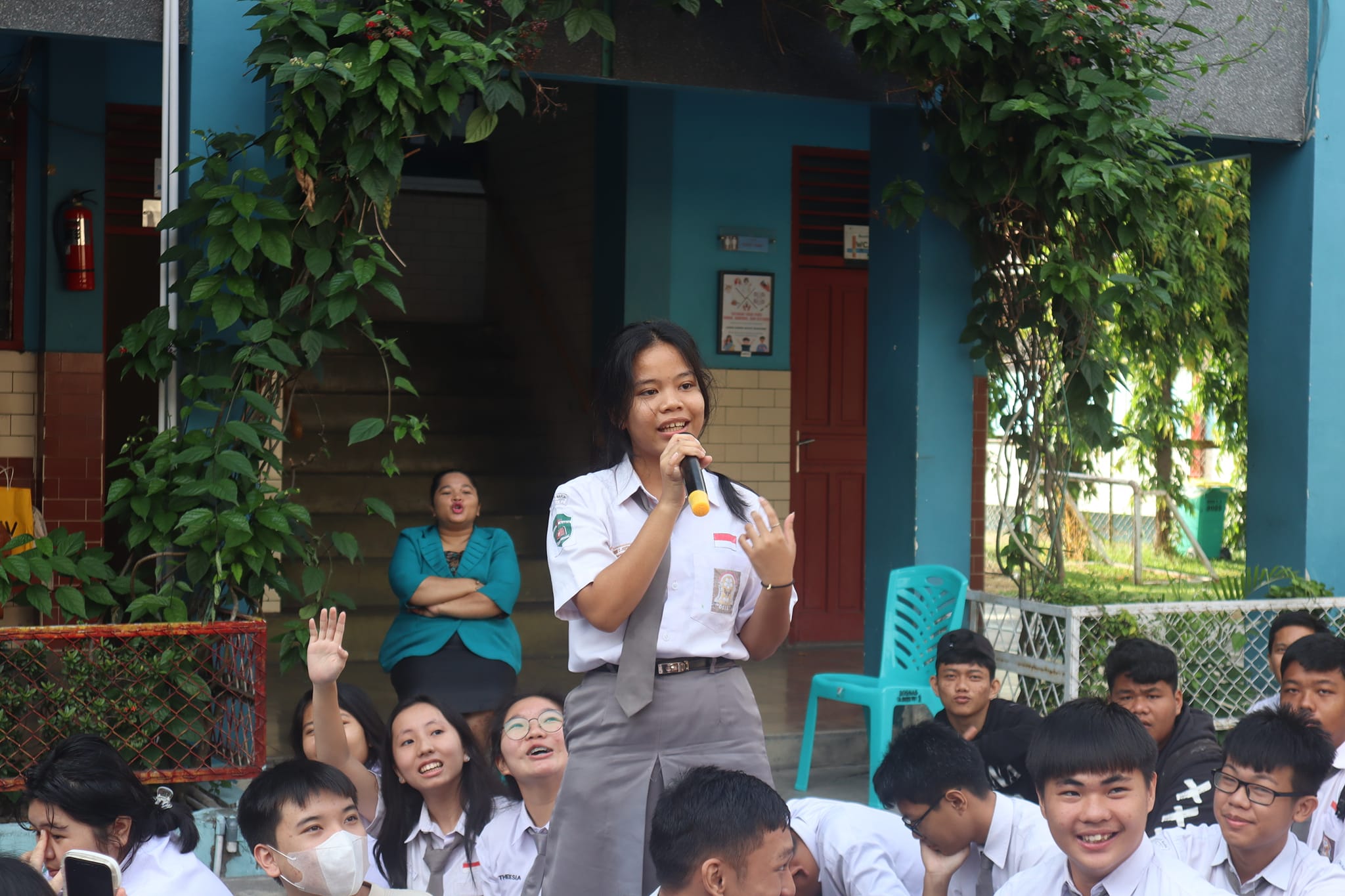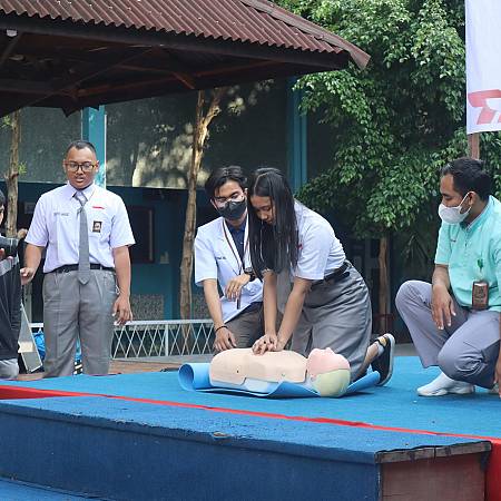 Materi yang dibawakan adalah tindakan pertolongan pertama ketika menemukan orang tidak sadarkan diri atau mengalami kecelakaan, khususnya dalam hal henti nafas. Sebagai pemateri, dr. Riska dan timnya memaparkan urutan prosedur Bantuan Hidup Dasar (BHD) dan mensimulasikan tindakan Resusitasi Jantung Paru (RJP). Para siswa juga diberikan kesempatan untuk mencoba tindakan RJP tersebut.
